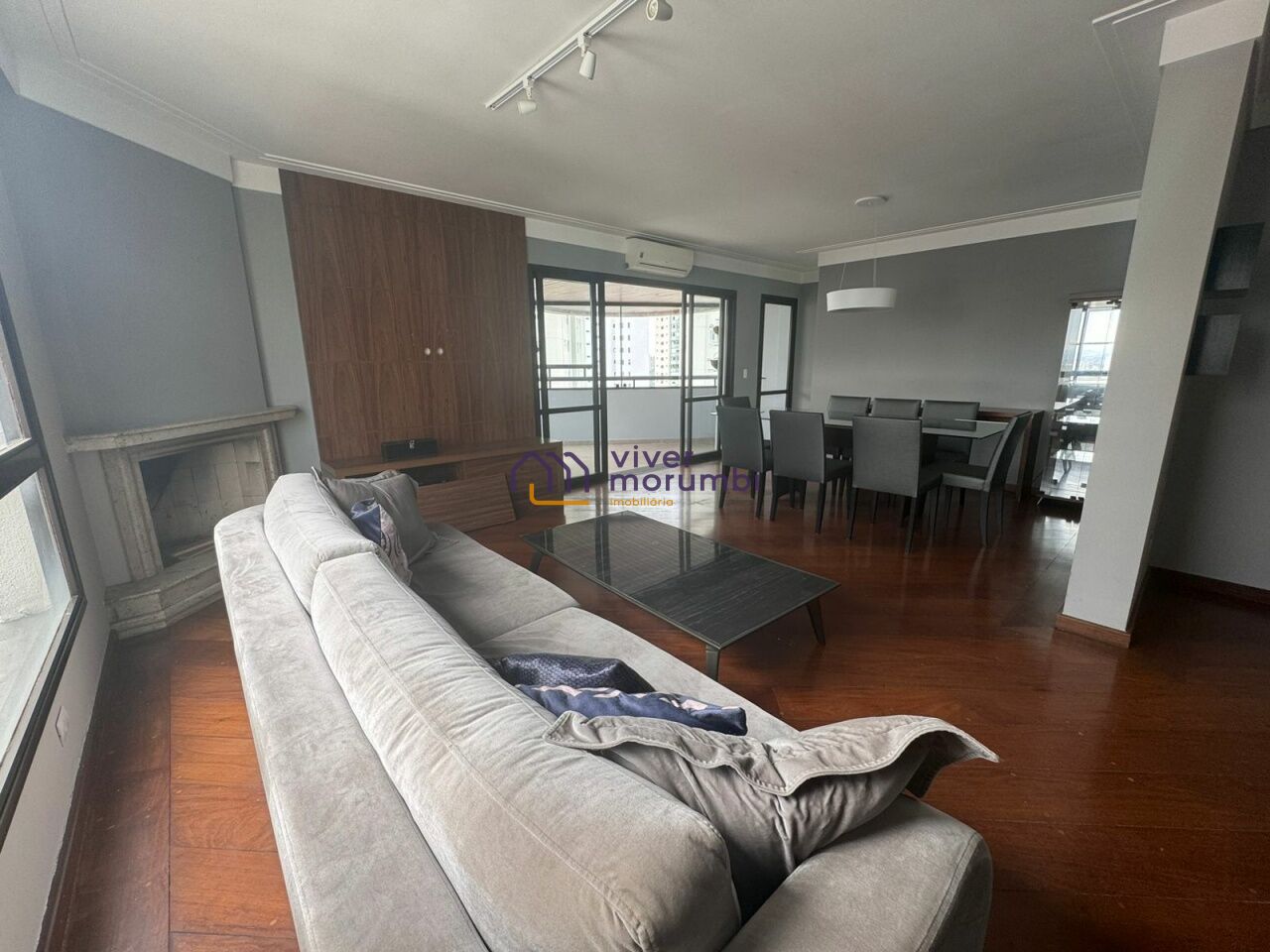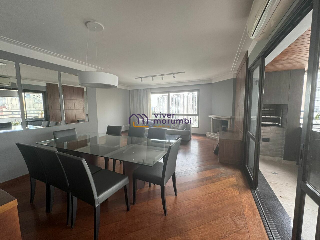 Excelente apartamento em condomínio tranquilo, com 4 quartos, sendo duas suítes, três deles com ar condicionado, sala de estra com lareira, sala de jantar também com ar condicionado, varanda gourmet muito espaçosa e funcional. Cozinha ampla com janelas, área de serviço espaçosa, quarto e banheiro para funcionário.