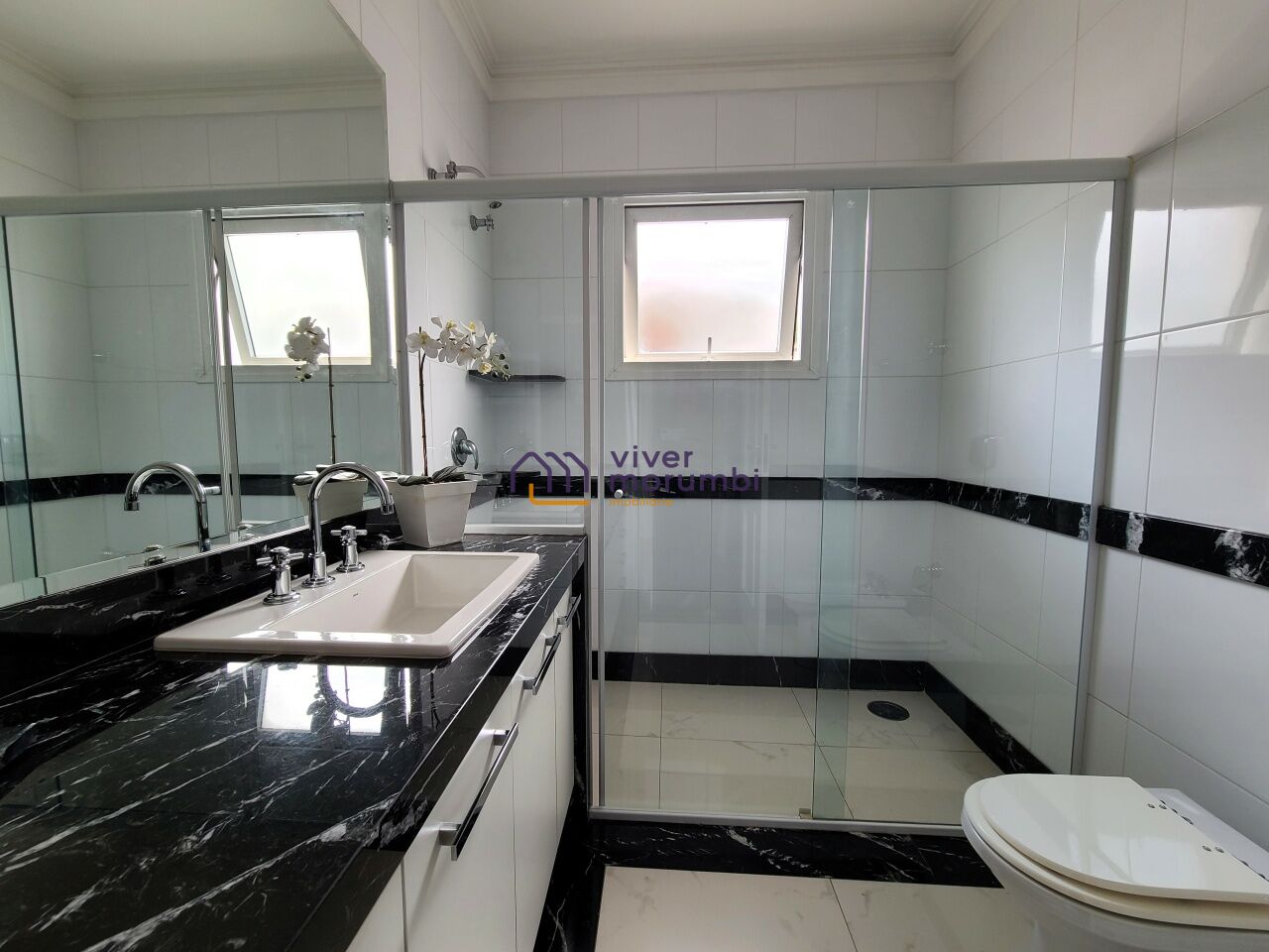 Já no piso superior, as 4 suítes são espaçosas, com destaque para a suíte master, que possui closet e banheiro senhor e senhora. Uma sala íntima e um escritório completam esse andar, e todos os cômodos possuem varanda, garantindo ventilação e luminosidade. A casa é repleta de armários planejados com marcenaria de primeira linha, oferecendo funcionalidade e elegância em cada detalhe.