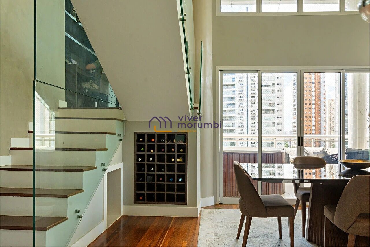 Apartamento duplex com pé direito alto. A planta original tem 3 suites, está com 2 suítes pois a 3 ª suíte foi transformada em closet, pode ser revertida. Andar alto, vista panorâmica. Espaço gourmet, varanda com jacuzzi. Apartamento todo reformado, com ambientes claros e arejados, ar condicionado, cozinha estilo americana com ilha, escritório no mezanino, área de serviço com dep. de empregados. Vagas de garagem fixas e determinadas, Lazer agradavel. Vagas de visitante. Facilidade de acesso tanto para Av. Morumbi quanto para Marginal Pinheiros/Ponte Itapaiuna. Próximo ao Parque Burle Marx, Colegio Porto Seguro Panamby e Colégio Pio XII. Imóveis no Morumbi. Apartamento, Casa e Condomínio Venda. Os melhores Apartamentos, Casas e Imóveis no Morumbi, Panamby, Real Parque, Jardim Guedala, Jardim Leonor, Vila Sonia, Brooklin, Campo Belo, Chácara Santo Antonio, Santo Amaro e região. Imobiliária Viver Morumbi. Veja nossas oportunidades.